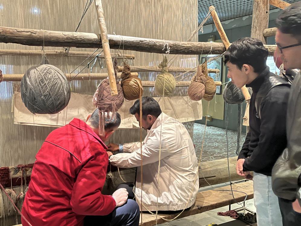此行第一站来到了武城县神龙地毯博物馆。在这里,讲解员向职工们展示了中国地毯文化艺术三千多年的发展历程以及神龙地毯艺术发展的新成就。在讲解员的引导下,职工还体验了传统手工编织工艺和流程。他们表示,只有在这里才能有这样独一无二的体验,这对他们来说是非常珍贵的经历,同时精美绝伦、内涵丰富的地毯工艺品也让他们赞叹不已。