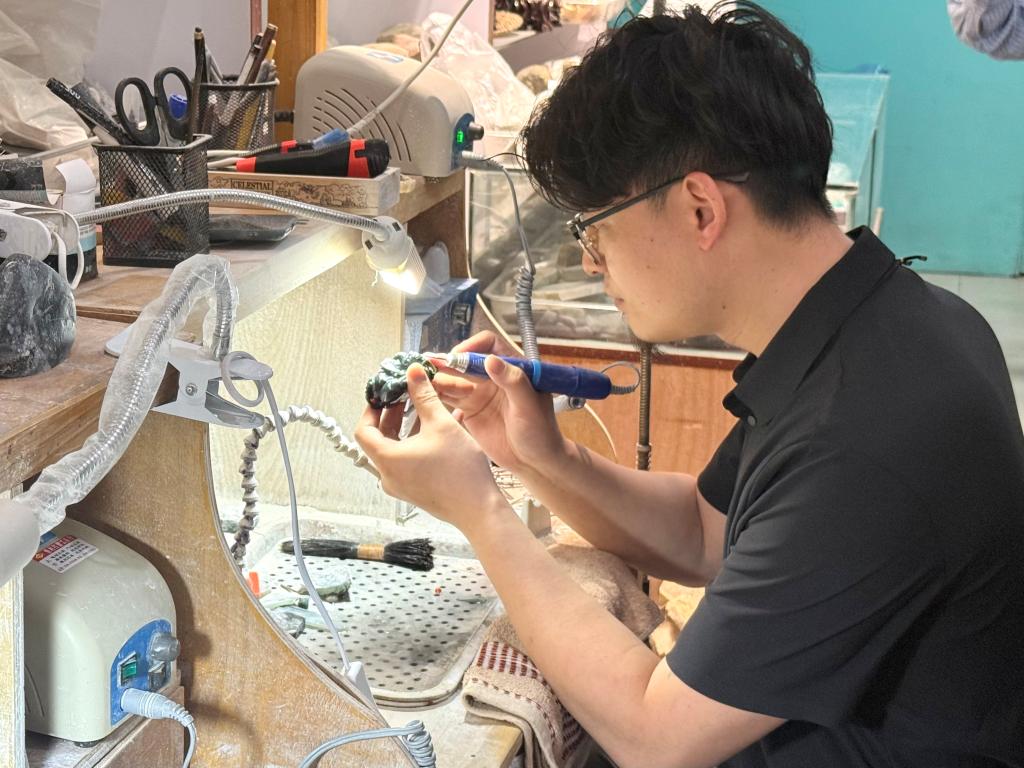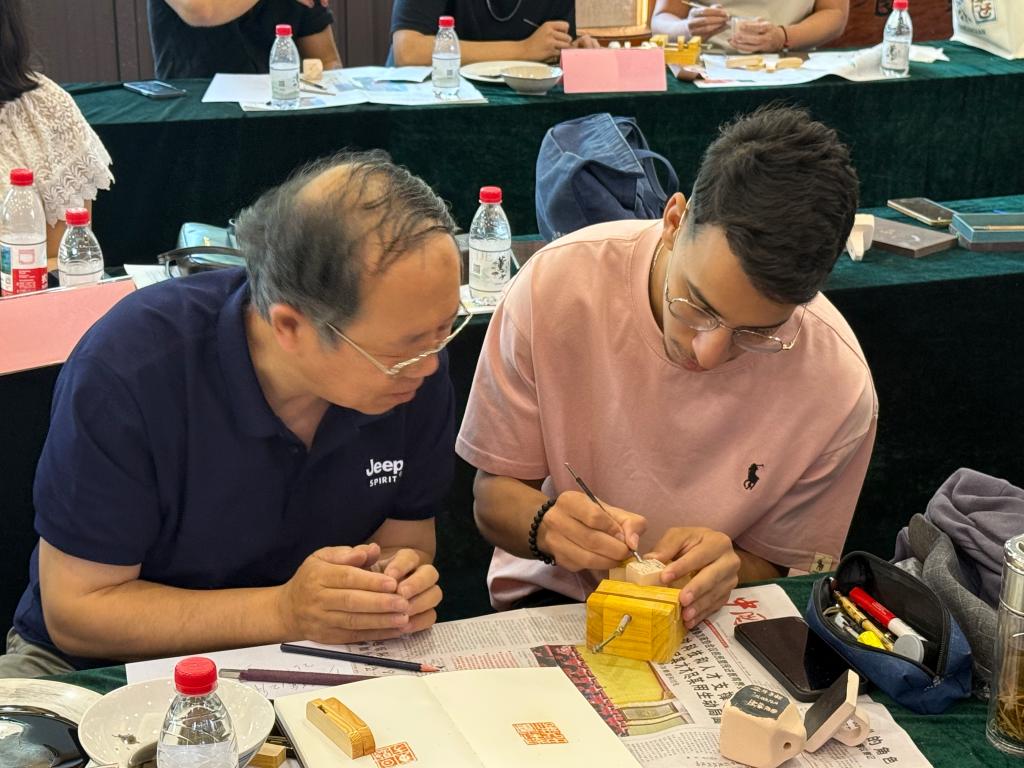 随后的体验环节,职工们走进弘道堂,亲身参与山东省级非遗项目——陶瓷印章制作技艺。篆刻老师们现场分组指导职工制作个人印章。通过自己动手雕刻,每位职工都完成了属于自己的陶瓷印章,切实感受到“方寸之间见天地”的中国传统艺术之美。